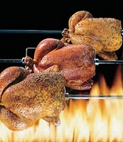 Imagine that chicken is on a rotisserie in front of a huge massive wall of flames happily cooking away.