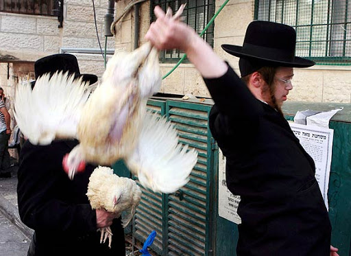 Now then. Any Jew can perform Kaparos, especially if they want all their sins washed away, but the sight of stoney-faced orthodox Jews doing a bit of chicken swinging has to be the most hilarious things available to onlookers.