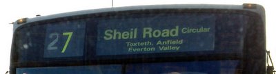 The wonderful www.transportdirect.info told me to travel on the, gulp, the number 27. This is a ‘circular route’ that involves going through Liverpool’s Sheil Road, via Liverpool ONE, and also passed the Liverpool Football ground.
