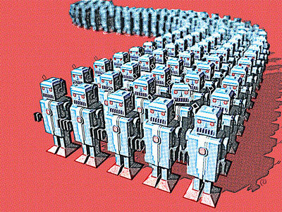 “No. No, you’re wrong. They don’t need us. They’ve got the robots. They’re automating it all. Replacing us all with robots.”