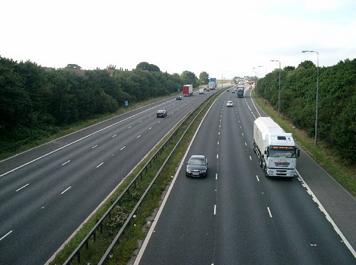 Two Scousers are riding along the M62 from Liverpool to Manchester on a motorbike.