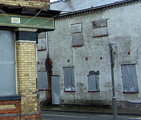 For some reason, large areas of Liverpool, especially in the inner city parts, have street after street of houses completely boarded up. They were probably scheduled to be demolished or something but the money ran out. So, they are just left.