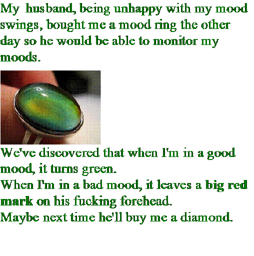 The tale of the mood ring 14 March, 2012 Christopher England Uncategorized Comments Off on The tale of the mood ring Rate this:Share this (please):TweetShare on Tumblr Share on Reddit (Opens in new window) Reddit Pocket Email a link to a friend (Opens in new window) Email Print (Opens in new window) Print Like Loading... Related