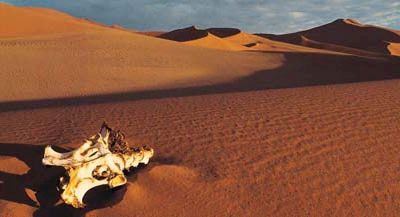 Looking at the hills and dunes around him, he thinks he knows the direction he was heading before. Just going by a feeling, he points himself somewhat to the left of that, and starts walking.