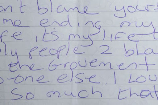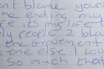 A lady called Stephanie Bottrill killed herself by stepping in front of motorway traffic.  She left a suicide note blaming the government.