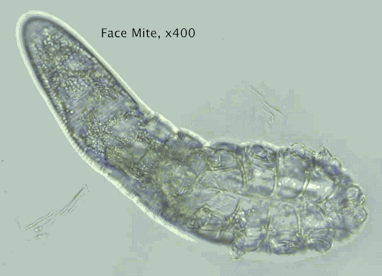 Yes, YOU, right now, have at least one species of the Demodex mite living in your face. You might even have a number of different species. But, live moving mites are living in your face. Fact.