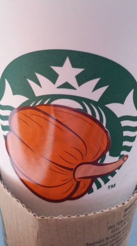 Except it wasn’t. Random cups had had stickers of pumpkins stuck on them. Those who got a cup with a pumpkin sticker attached were to be handed something. It was a lucky dip thing inviting me to open the sealed section to see if or what I’d won. Confused and full of flight adrenalin, with an ever lengthening line of people waiting to be served, I felt like I was taking an hour to tear along the dotted lines. But soon, there it was, I could have a free pastry it said.